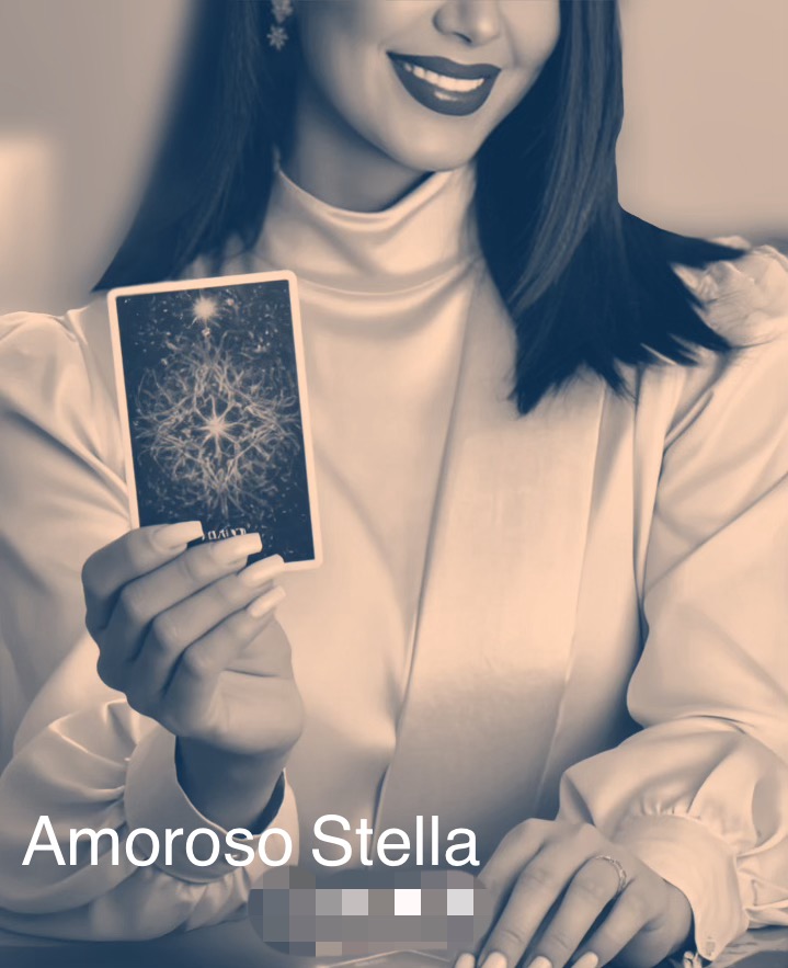 Amoroso stella Voyante professionnelle expérimentée et reconnue dans le domaine de la voyance. Avec des années d'expérience et un don de naissance transmis de génération en génération, elle met ses compétences à votre disposition pour vous guider et vous éclairer sur votre avenir.